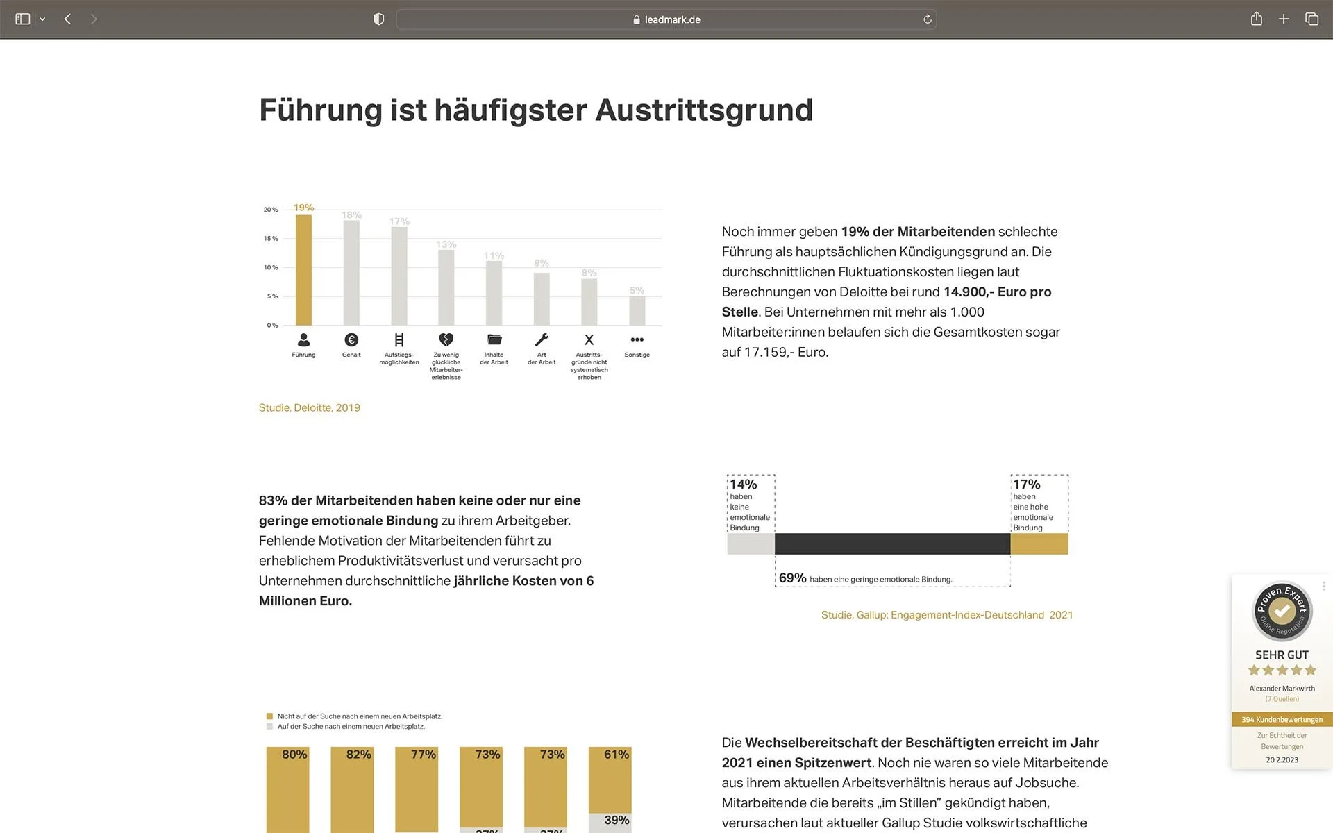 Auf über 40 Seiten, erhalten Nutzer:innen relevante Informationen zu den Themen Fluktuation und den daraus resultierenden Kosten für Ihr Unternehmen. Wir freuen uns auch in Zukunft verstärkt mit LEAD.MARK zusammen zu arbeiten und gemeinsam viele spannende Projekte umsetzen zu dürfen.